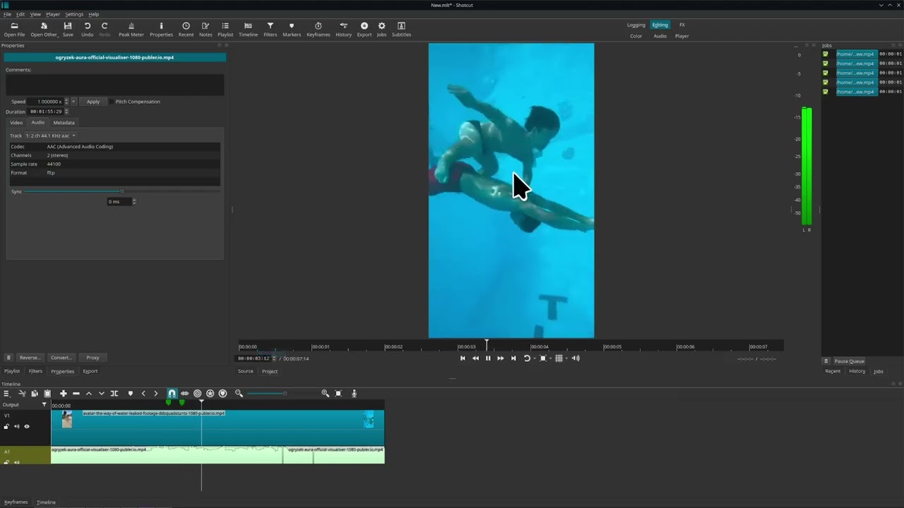 This couldnt be a simpler track, its just one video track and one audio track with the audio track cut down to match the length of the video track and to hit a “drop” at the correct frame.