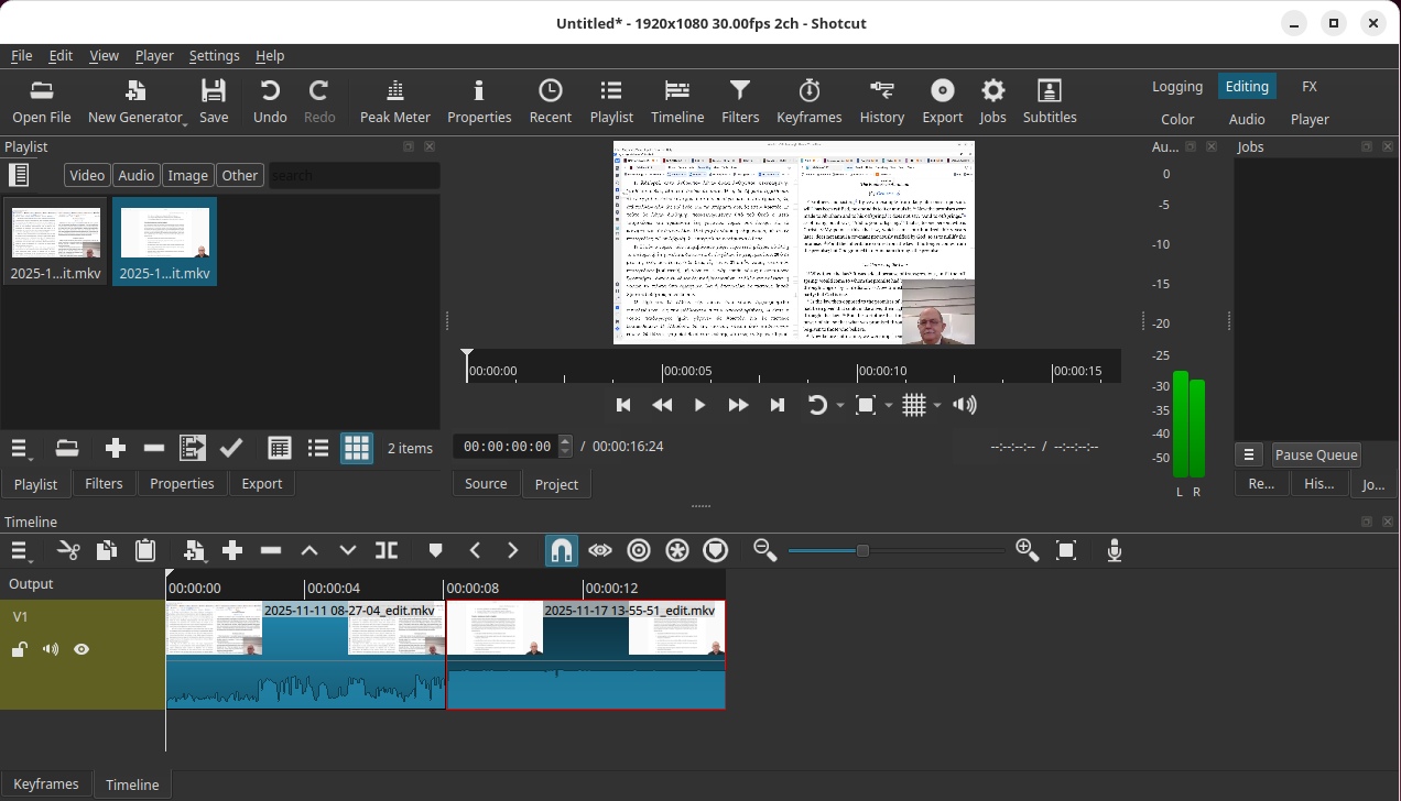 TLDR: two clips; one shows the audio wave form when added to the timeline; the other does not. This may not be a Shotcut issue, but I’m hoping someone here can help me figure it out!