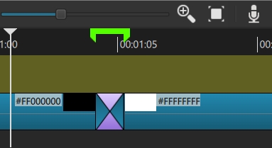 Create a dissolve in the normal way by dragging the clips, making the transition duration either 1-second, 2-seconds, 3 or 4-seconds.