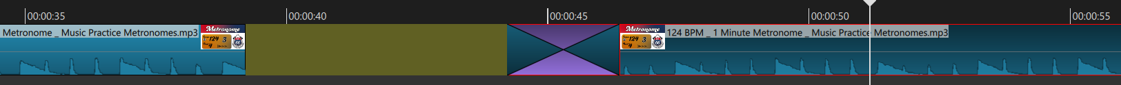 I have been happily editing until I must have pressed a button that accidentally changed my timeline settings. Previously, on two crossfaded clips, when I move one clip, it will leave a gap between the crossfade and the clip, like so: