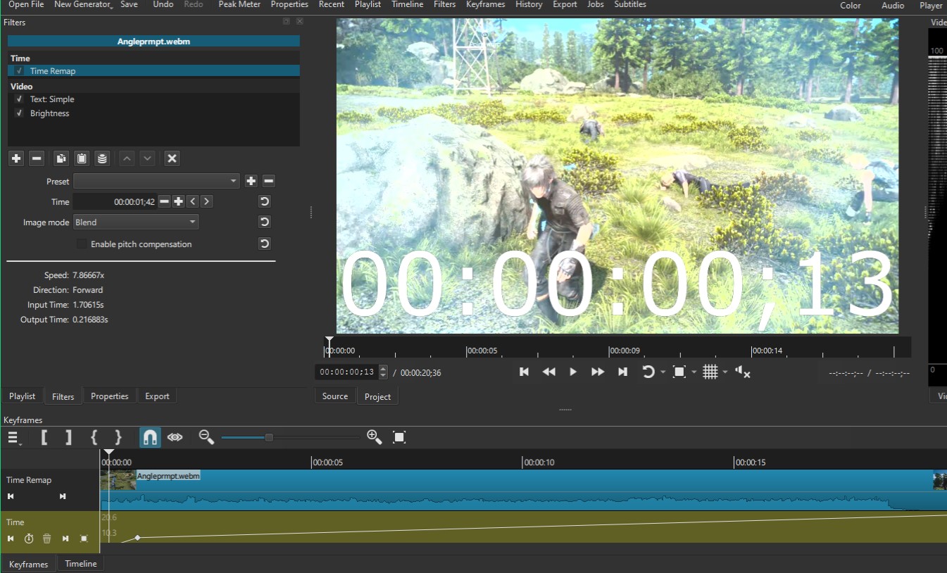 Any source files (webm/mp4, and GIF, so far) or in a previous project, I apply a Time Remap filter.