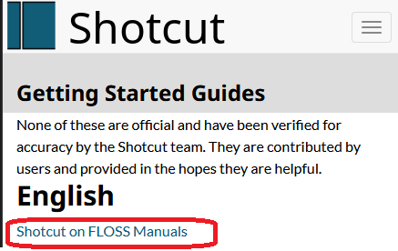 The Shotcut - Getting Started Guides have a dead link under English called “Shotcut on FLOSS Manuals”, could you fix?