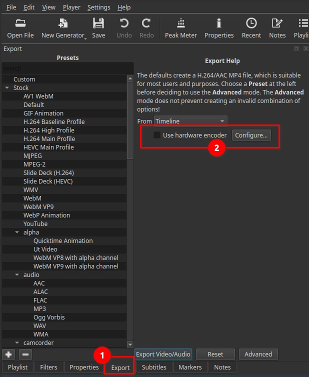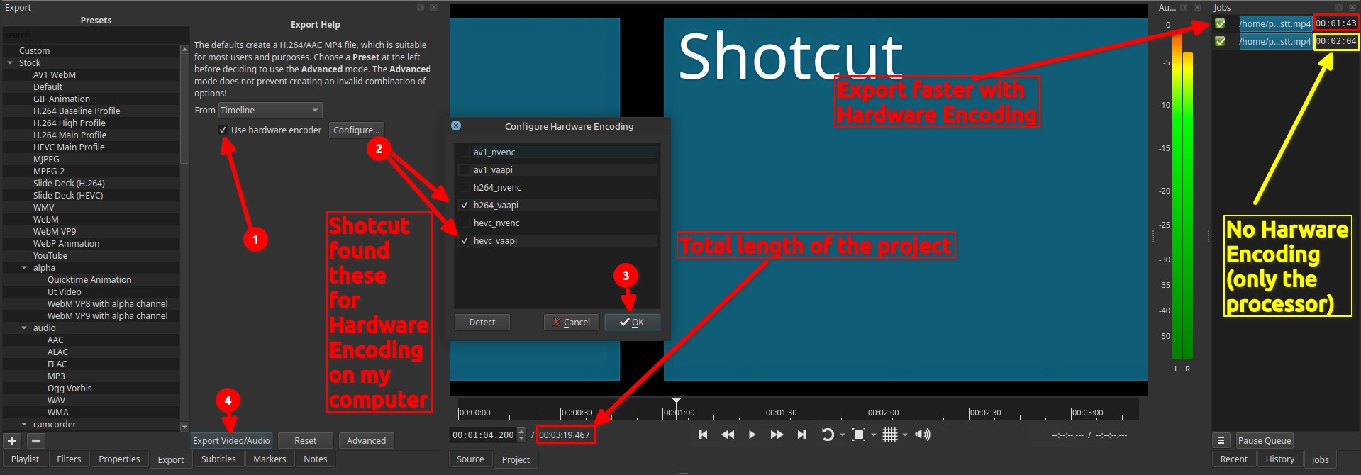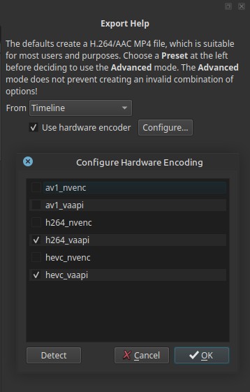 Shotcut automatically scans the system and lists all hardware encoders it can access on the current operating system.