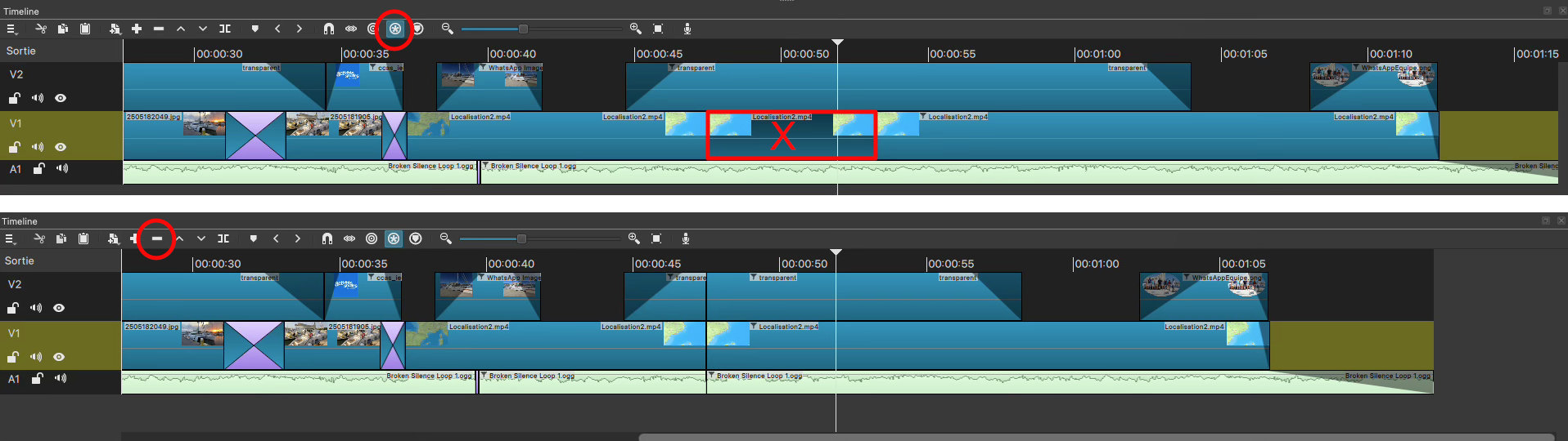 Je suis en train de faire un montage suite à stage hauturier sur la Méditerranée. Mon montage a deux pistes vidéo et deux pistes audio. Le montage avance et je me rends compte que certaines séquences sont un peu longue ou redondante. J’aimerai par exemple au milieu du montage, réduire une séquence sur la piste vidéo une de 10 secondes par exemple. Comment faire pour que les autres pistes diminuent également de 10 secondes afin de conserver la synchronisation ?