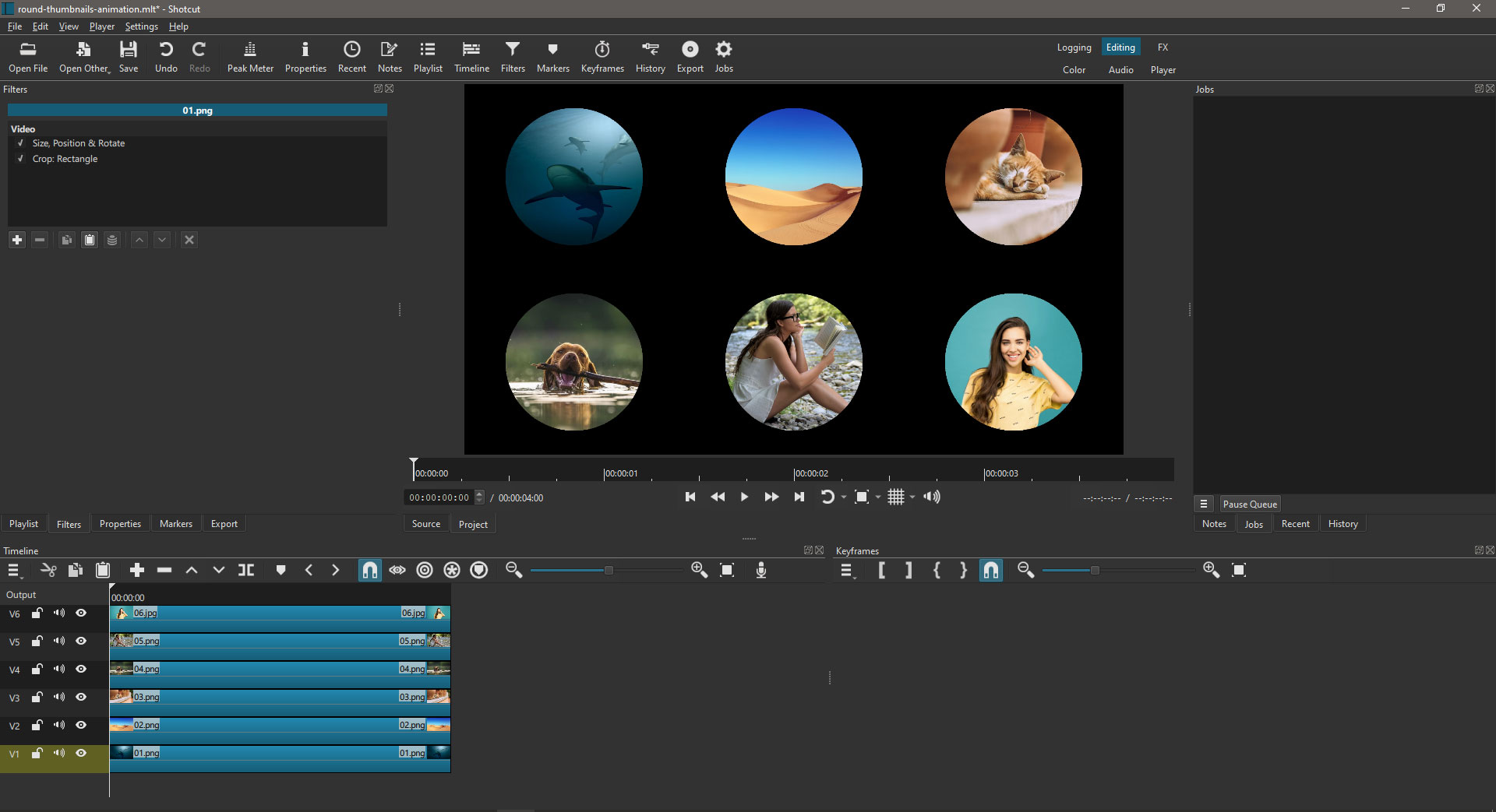 - Import all the 6 images in the Timeline, each one on its own track.