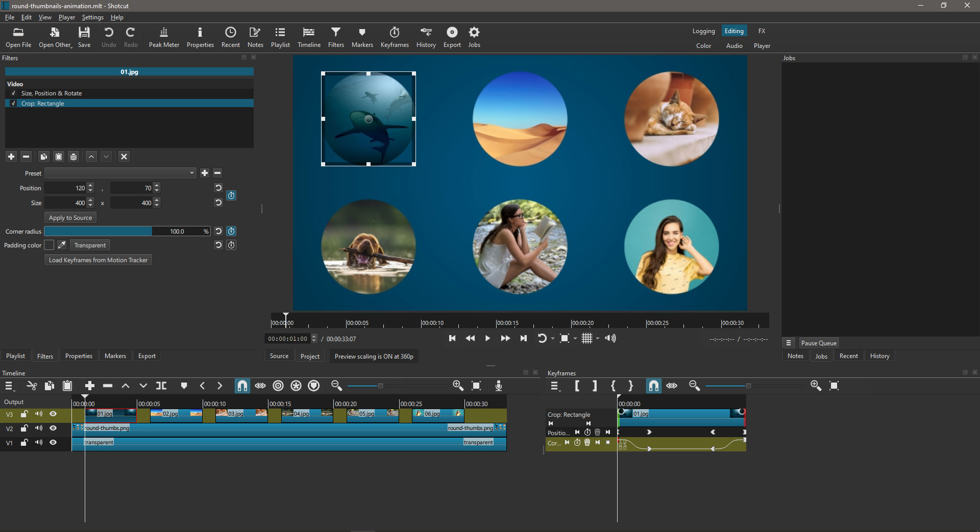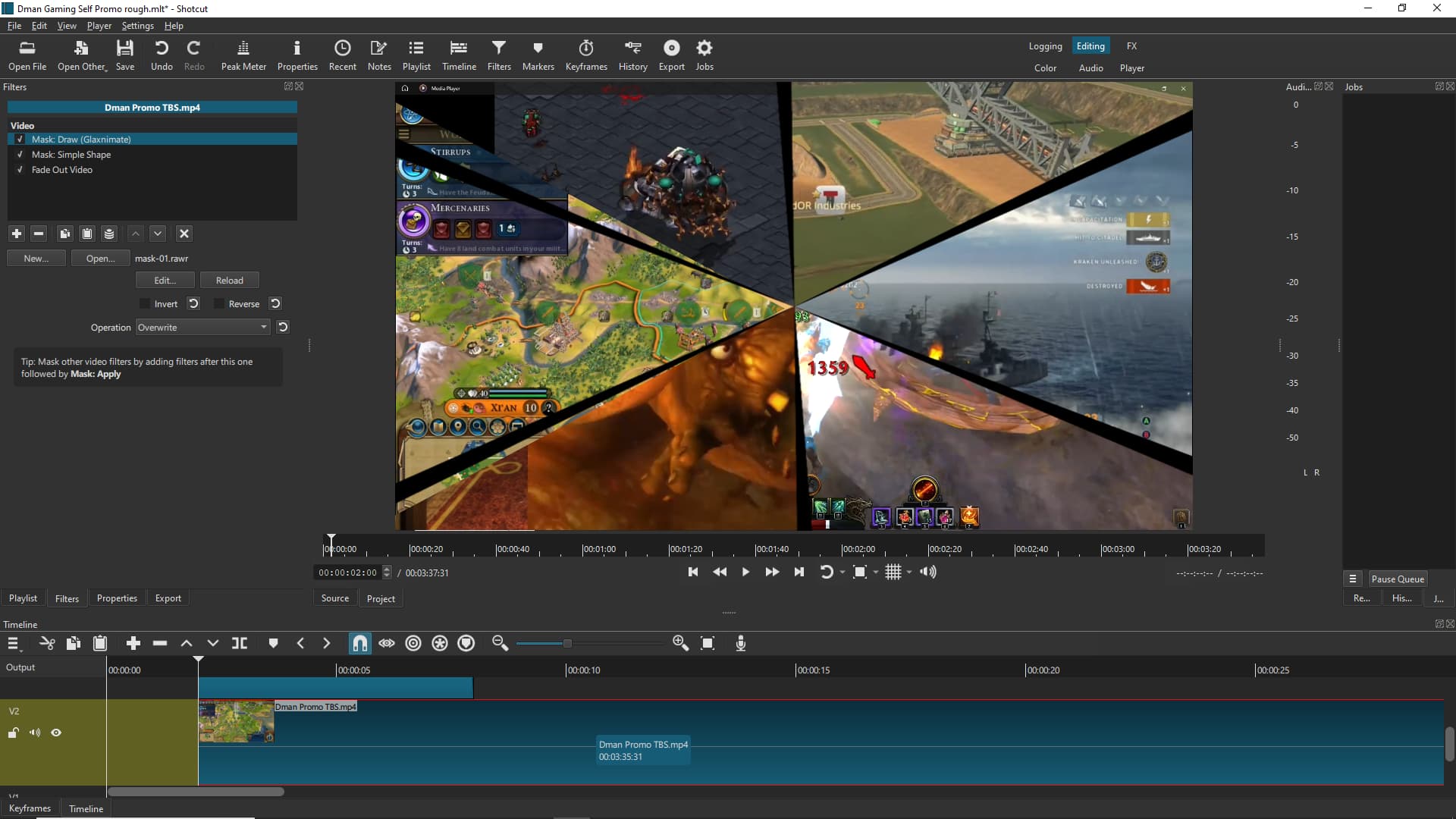 The first two I THINK were me messing with Glax before I downloaded and extracted your sample project. If those look out of place, they are. But i got as far as figuring out how to draw the Mask shape there… i just couldn’t figure out how to load that back into Shotcut from Glax(nimate)?