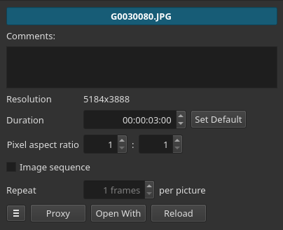 • Click the Image sequence checkbox if this image is a member of an image sequence and you want to make Shotcut play the sequence instead of the single image for many frames. An image sequence is a collection of image files that represent frames of video saved with a counter number in the file name.