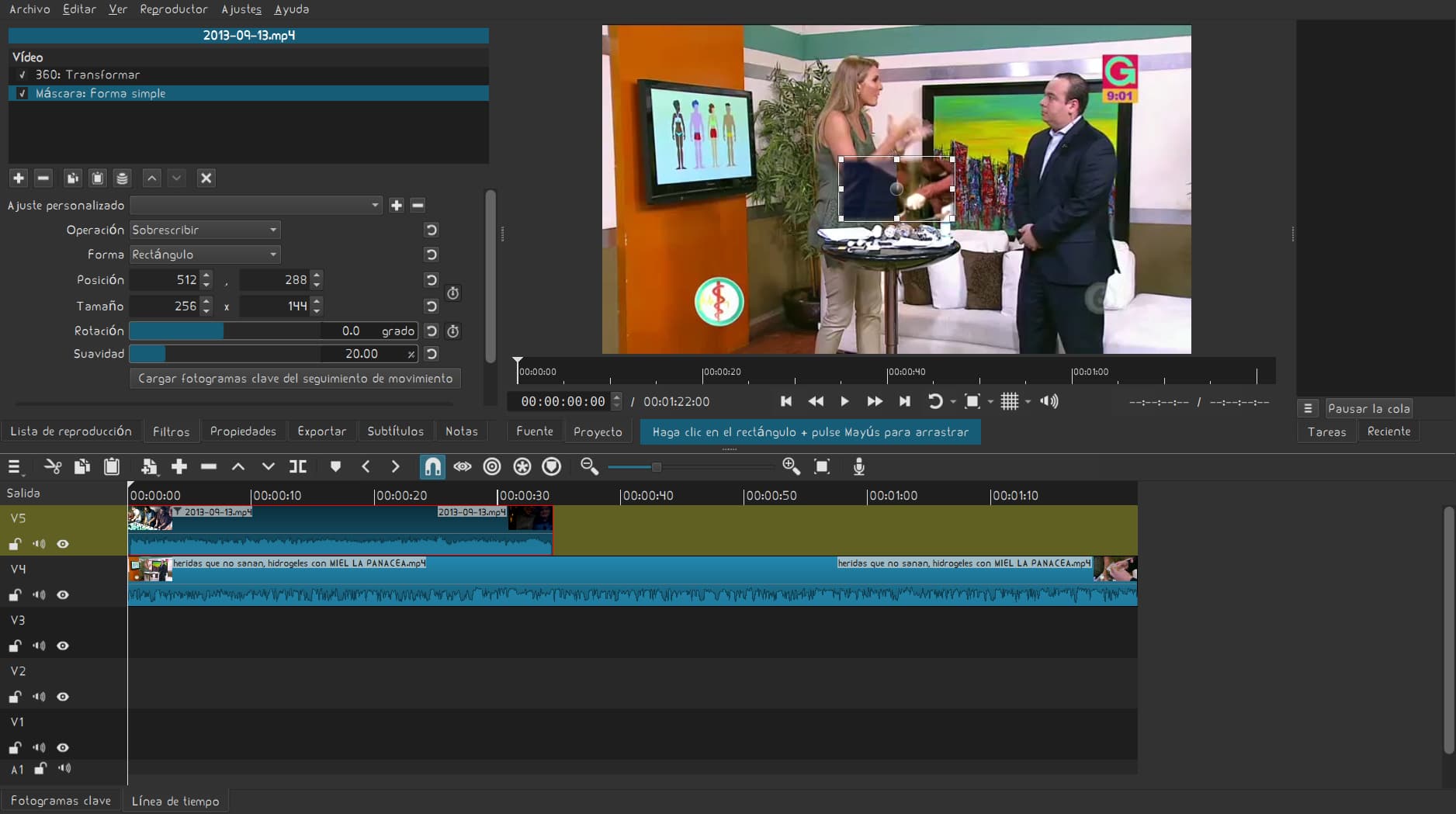 It would be great if Shotcut could also provide an easy-to-use way of aligning masked selections vertically and horizontally. The options need not be as sophisticated as in Inkscape, Scribus or even the much more simple Glaxnimate. Just providing the same options as are already there for Size would be enough.