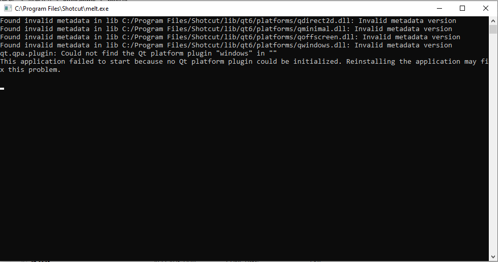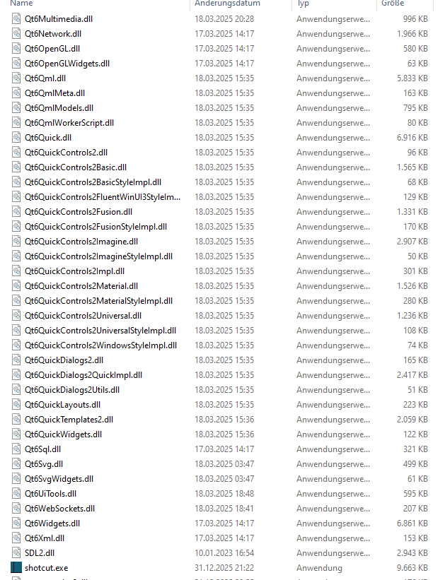 And I installed Shotcut via the official Build from Github. So all Files should be linked appropriately. And you can see in the CLI Log that there is a Response from the QT Module.