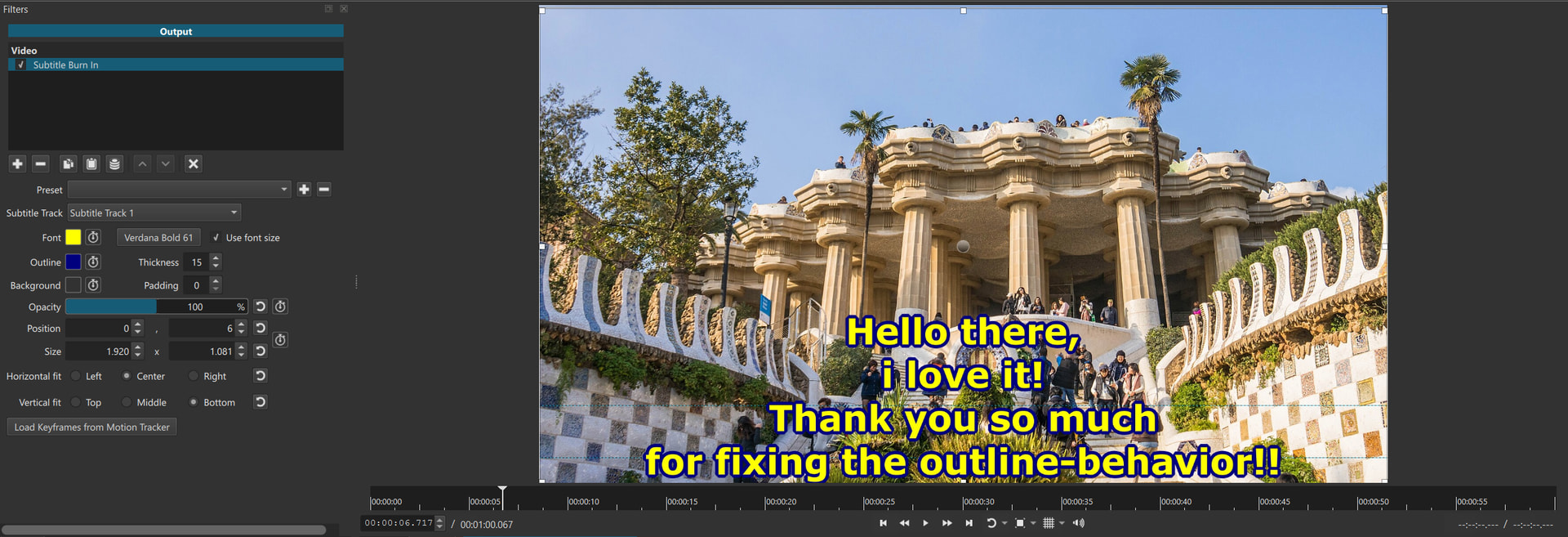 @shotcut I’am really trying to agree with you, because i get your point. But after a week of pondering i’d like to claim the opposite. It’s not a bug, okay. But it’s not accessible, either. Subtitles shall give access to disabled people (also those who don’t speak my language). Outlines make subtitles on visually disrupted background more accessible. This is why it’s important for me.