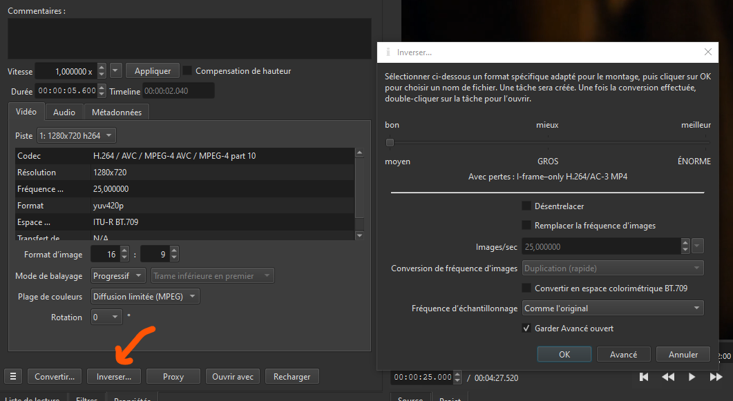 [dnxhd @ 000002877f7e77c0] 1280x720, 4:2:2 8 bits, MBAFF=0 ACT=0