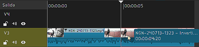 Seleccione el video/clip en la línea de tiempo > diríjase a la pestaña de propiedades > presione el botón “Invertir“