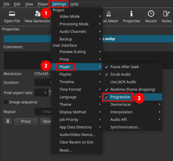 When Progressive is enabled, the Deinterlacer setting determines how interlaced video is converted to progressive frames for preview.