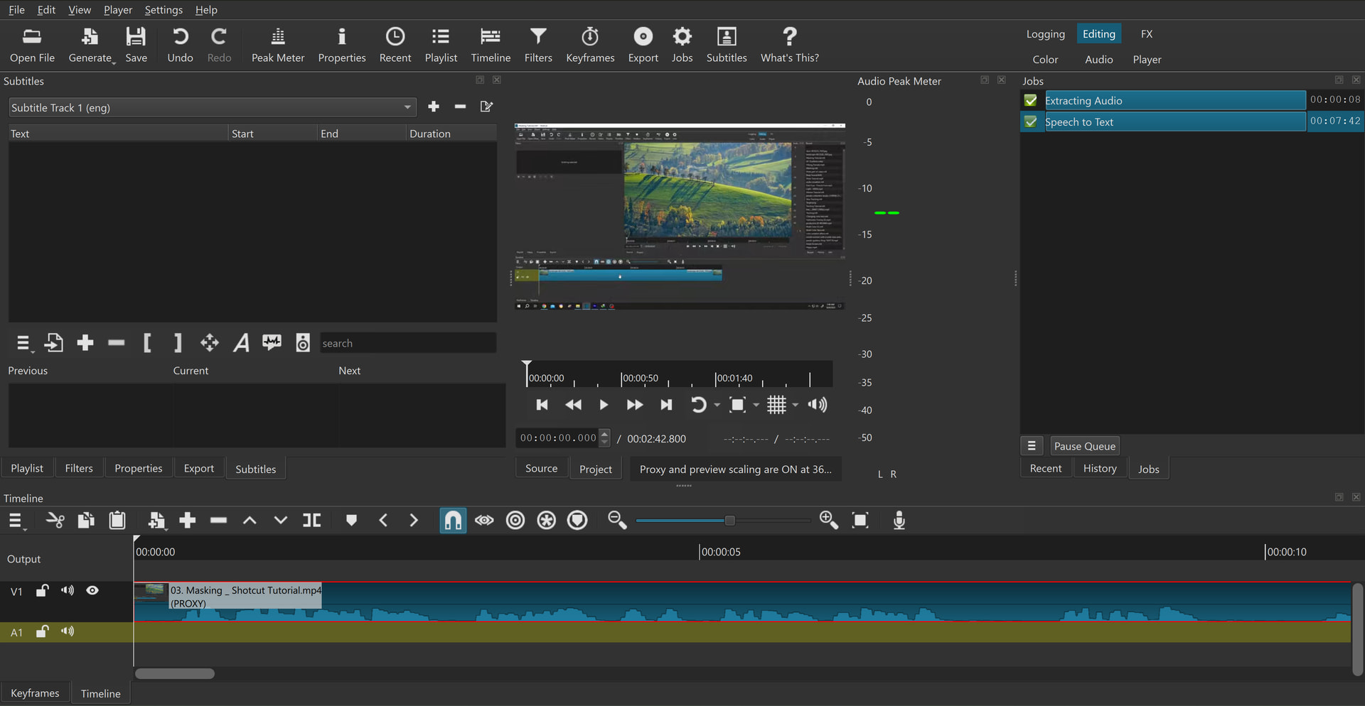 I selected my video, clicked subtitle and created a new subtitle track, clicked the Detect Speech, 2 jobs completed yet it gave me nothing,