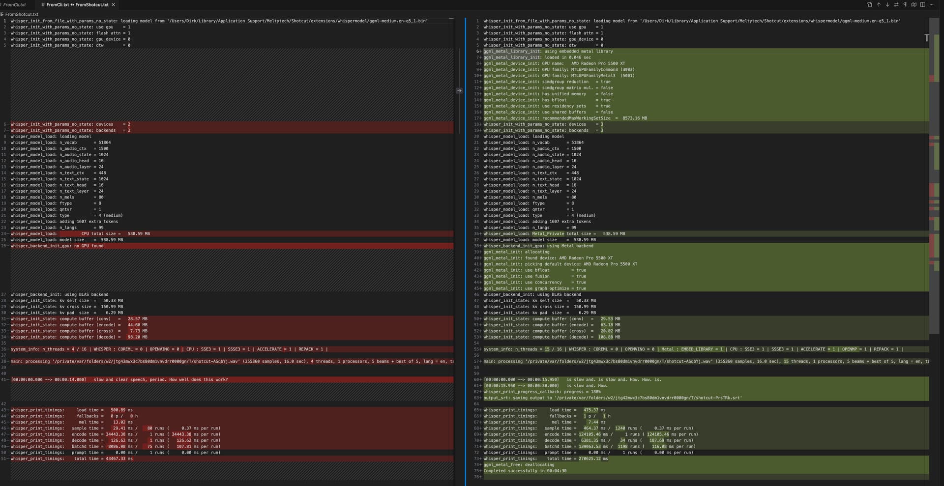 main: processing ‘/private/var/folders/w2/jtg42mwx3c7bs80dm1vnvdrr0000gn/T/shotcut-hJohme.wav’ (255360 samples, 16.0 sec), 15 threads, 1 processors, 5 beams + best of 5, lang = en, task = transcribe, timestamps = 1 …