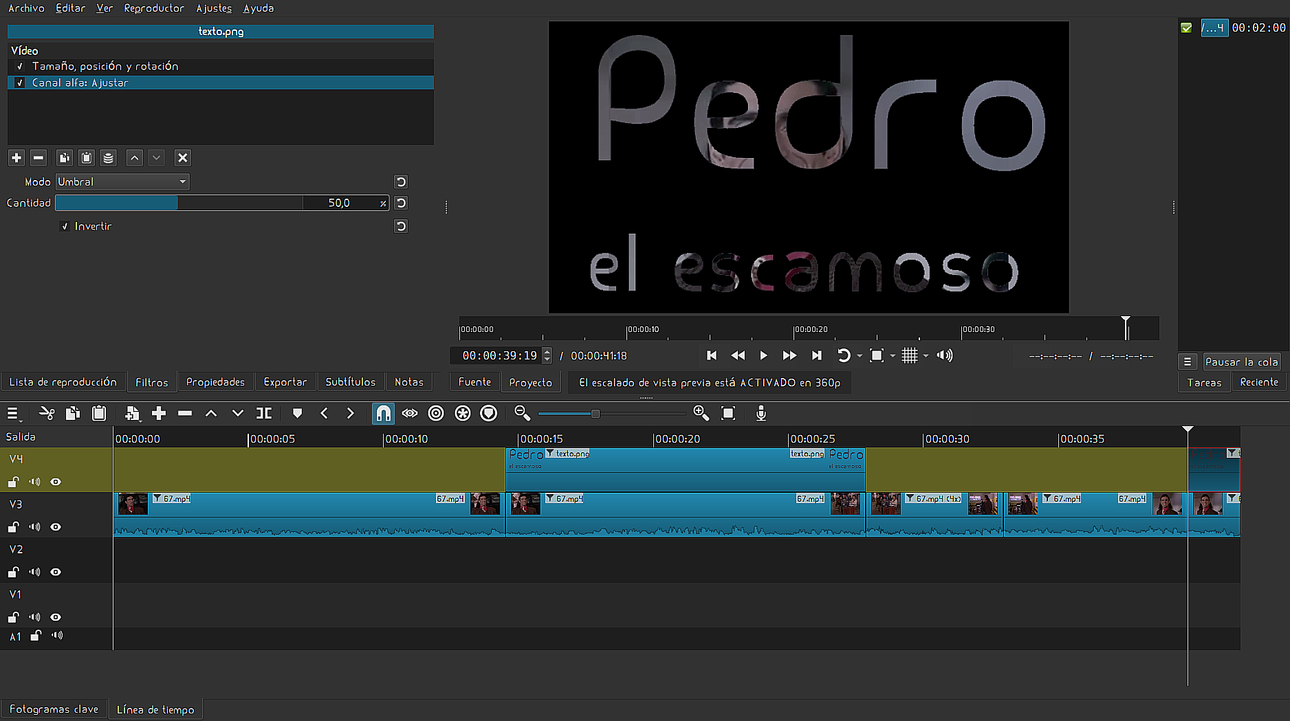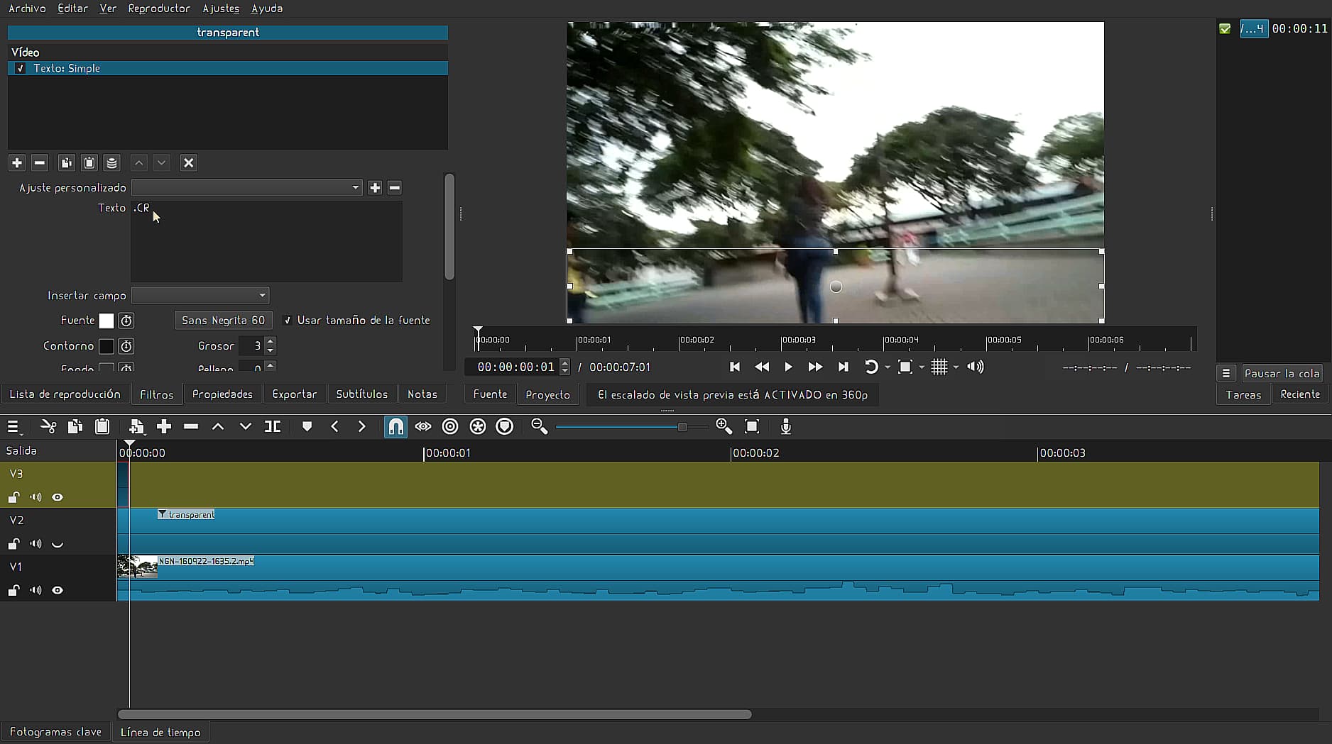 Anteriormente, exporté un proyecto modelo(.mlt) y tenía aplicado el filtro de “Tamaño, posición y rotación“, así que no descubrí ¡EL PEQUEÑO GRAN DETALLE!