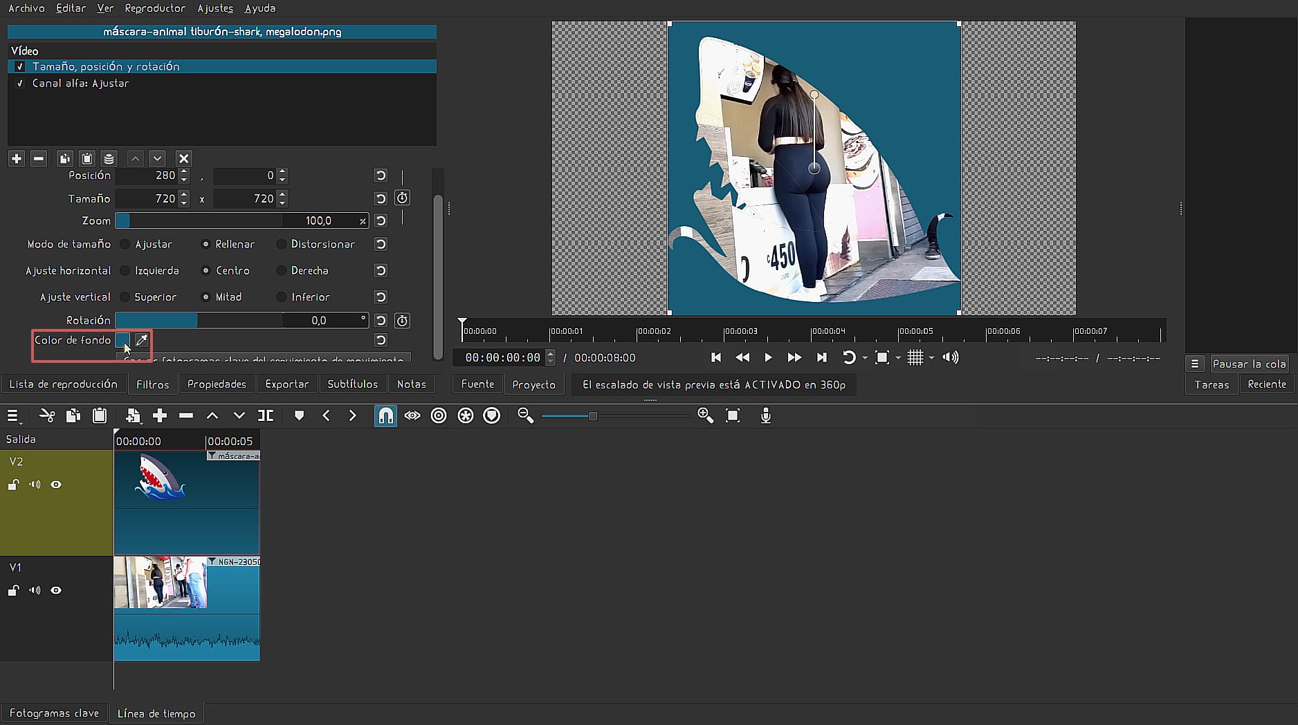 ; de lo contrario, a la hora de exportar el video, el fondo quedará blanco